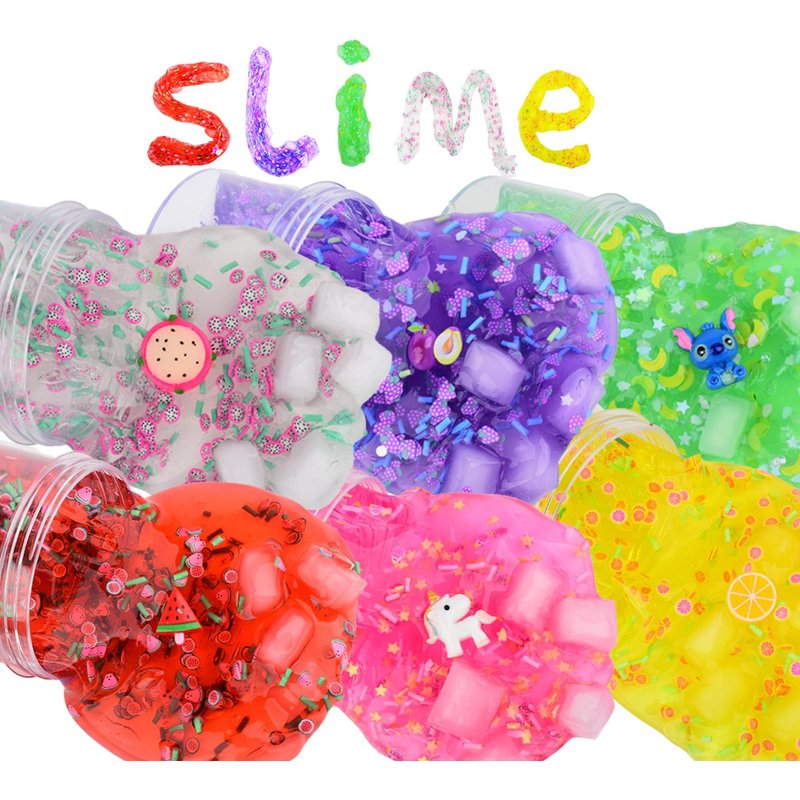 - It's really fun to play with kids' imaginations and mix and match crystal clear slime with cute accessories that create bubbles when played and make farting noises when squeezed