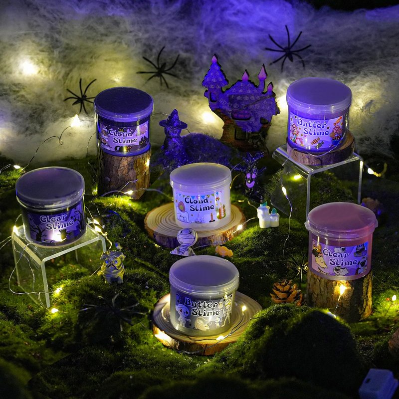 - 🕯️【Various Add-ins】This slime kit for kids is Halloween themed, ranging from white to purple to black, and contains 8 Halloween slime add-ins. Whether you want to make crunchy slime, fluffy snowflake slime or smooth butter slime, paired with a variety of Halloween slime charms to create your own one-of-a-kind slime creations, this kids slime kit has everything you need. Get in the Halloween spirit by pairing these accessories! Use the string lights included in the kit to create all the festive moods you want to experience such as Halloween!