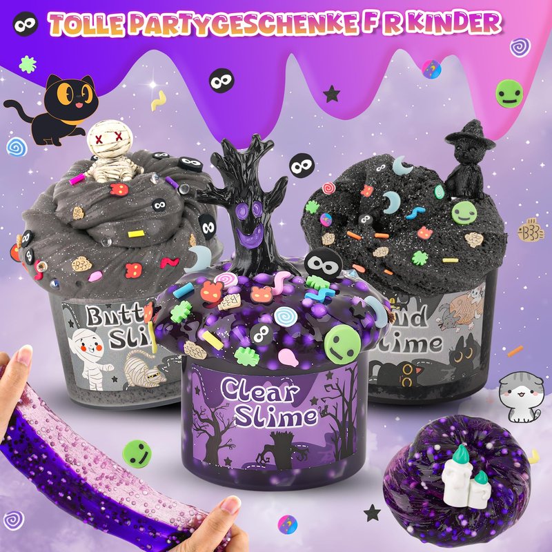 - 🐈⬛【Non-stick & 100% Safe】Our purple kids slime kit for kids is made of high quality raw materials, non-stick, safe for adults and children, but please do not eat it! Please note that children under the age of 3 years old under the supervision of use. Our Halloween toys for kids are perfect Halloween goodie bag fillers.