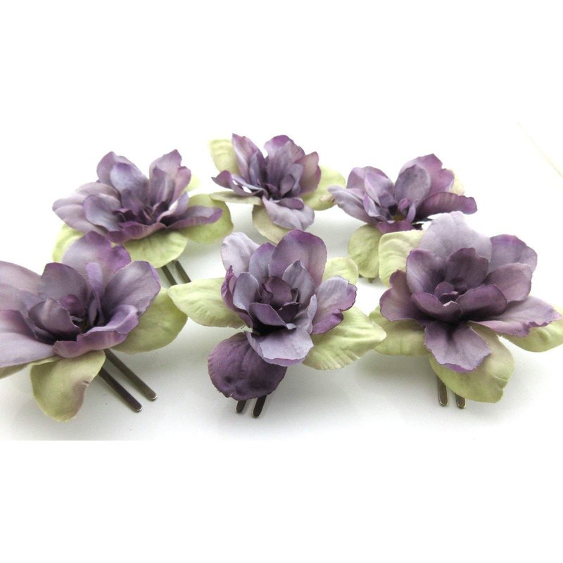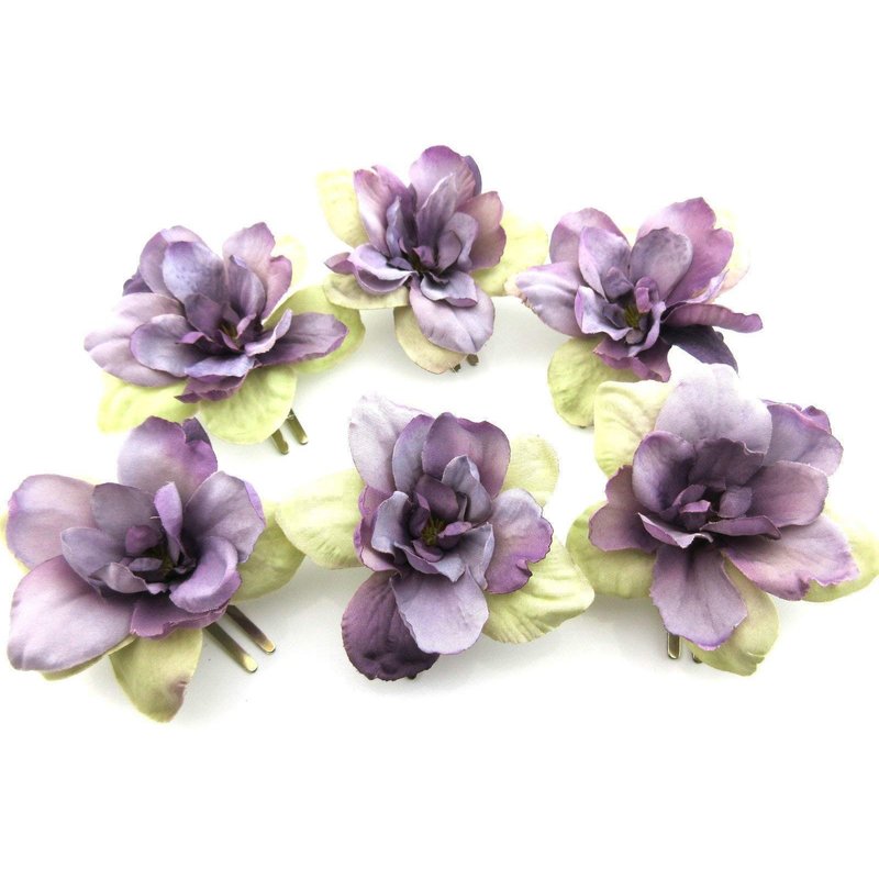 6 pc Lot Violet Beige Apple Blossom Silk Flower Hair Clips
