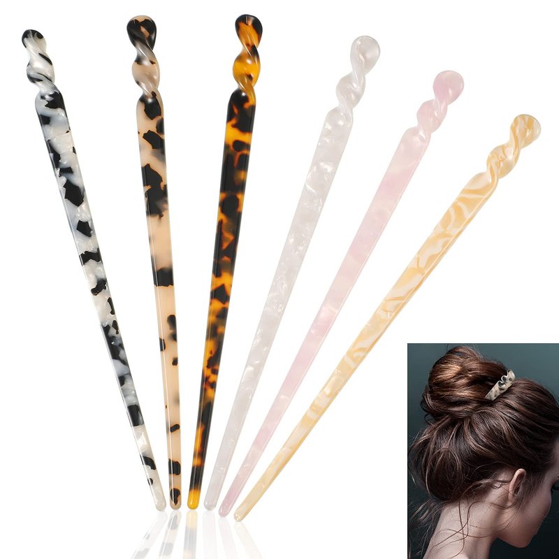- What you will get: you will receive 6 pieces acetate hair sticks, each hair stick total length is about 17.5 cm/ 6.9 inch, these tortoise shell hairpins are exquisite in craftsmanship, stylish and elegant, and are available in 6 colors, which can meet your daily use and replacement needs