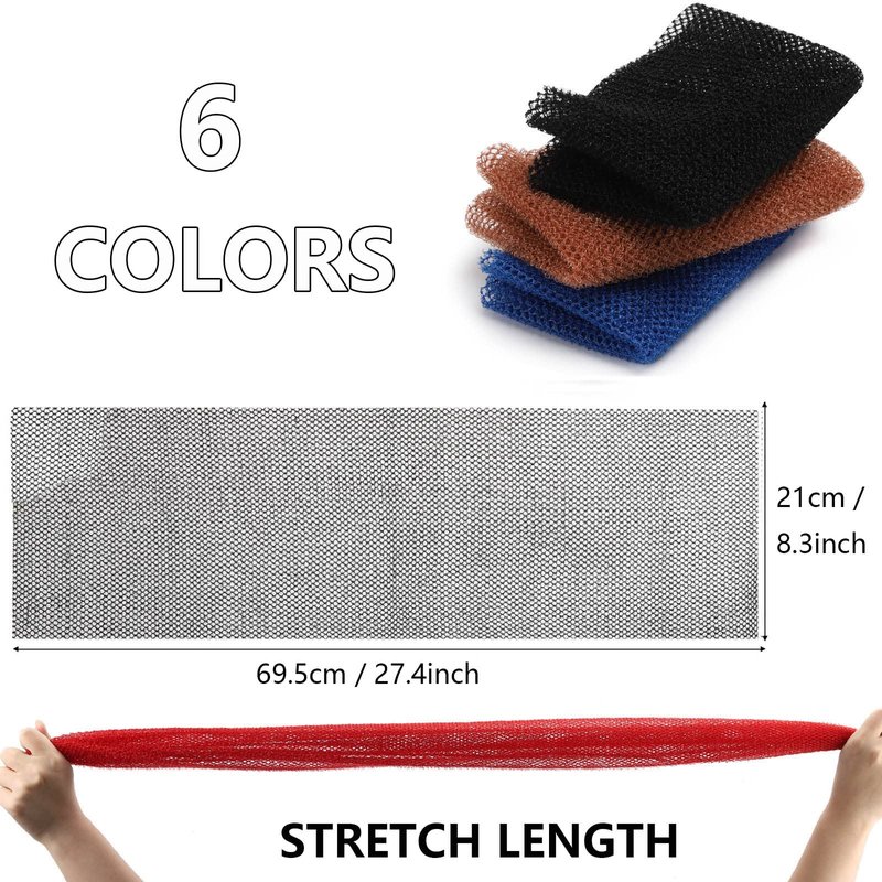 6 Pcs African Bath Sponge Long Exfoliating Net Nylon Body Back Scrubber (7.87x25.6inch)