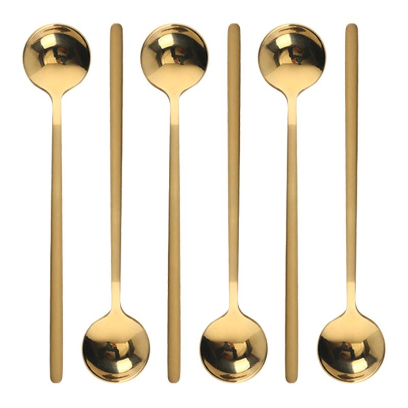 6 Pcs Coffee Spoons Stainless Steel Tea Spoons Round Dessert Spoons Long Handle Spoons for Hot Chocolate Ice Tea Latte Dessert Espresso Golden