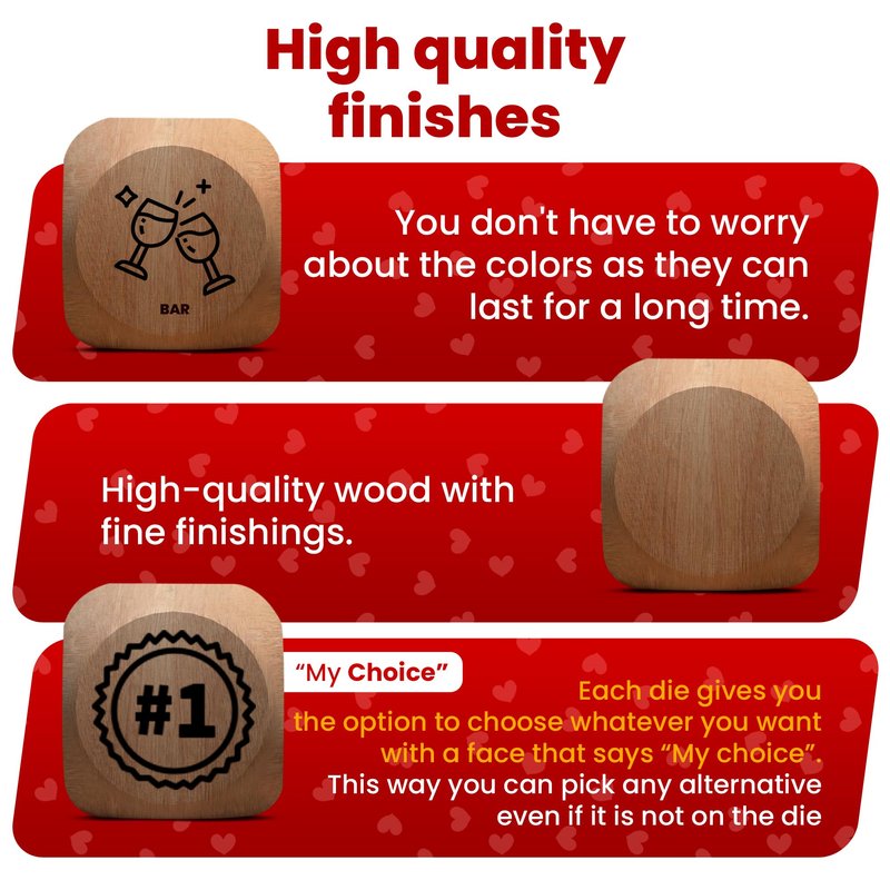 - ❤️ AFTER-DARK ADVENTURES: Unleash your creativity with our Wooden Dice Set for cool date ideas after dark! Ideal for love games, these dice encourage communication, connection, and exciting surprises.