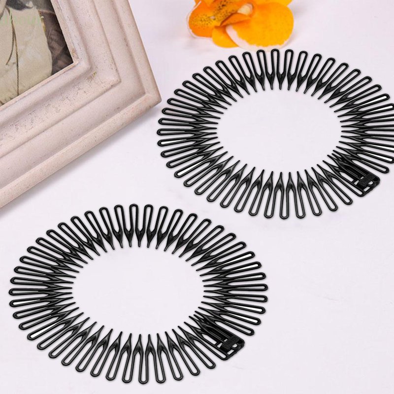 6 PCS Full Circular Stretch Comb Headbands Plastic Flexi Comb Circle Headbands with Teeth for Women's Hair Flexible Plastic Circle Comb Women Lady Stretch Plastic Full Circle Hair Comb (Black).