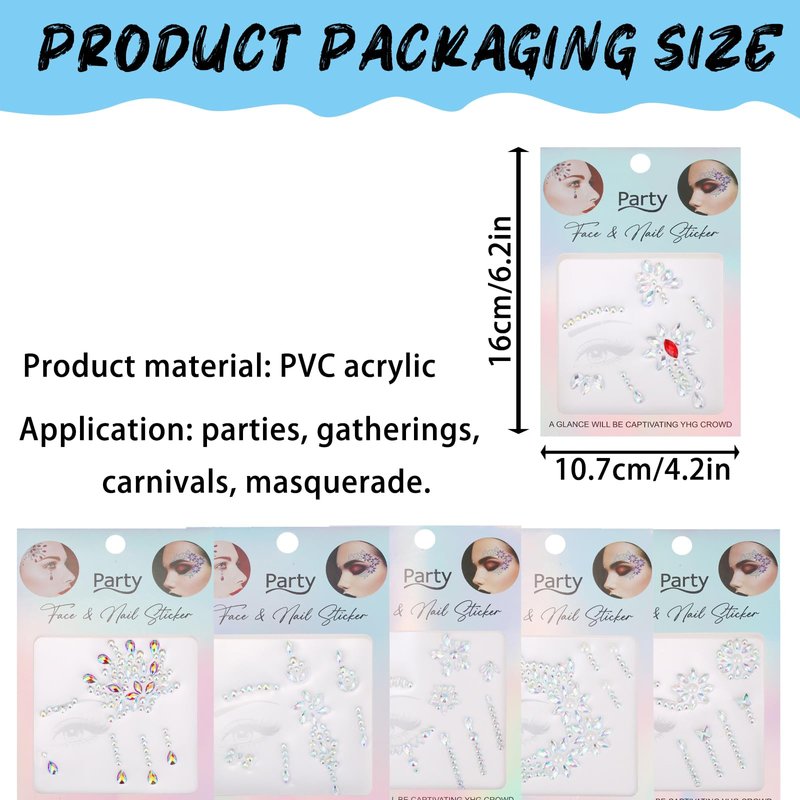 - Wide range of applications: The diamond tattoo stickers for women and kids makeup. Body Gems Stick on face, eye, chest, etc. They will give your face a little magic and make you more charming in the party or other activity