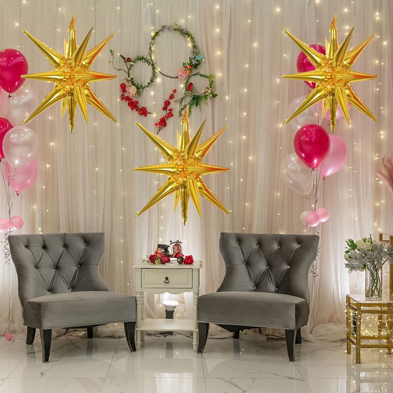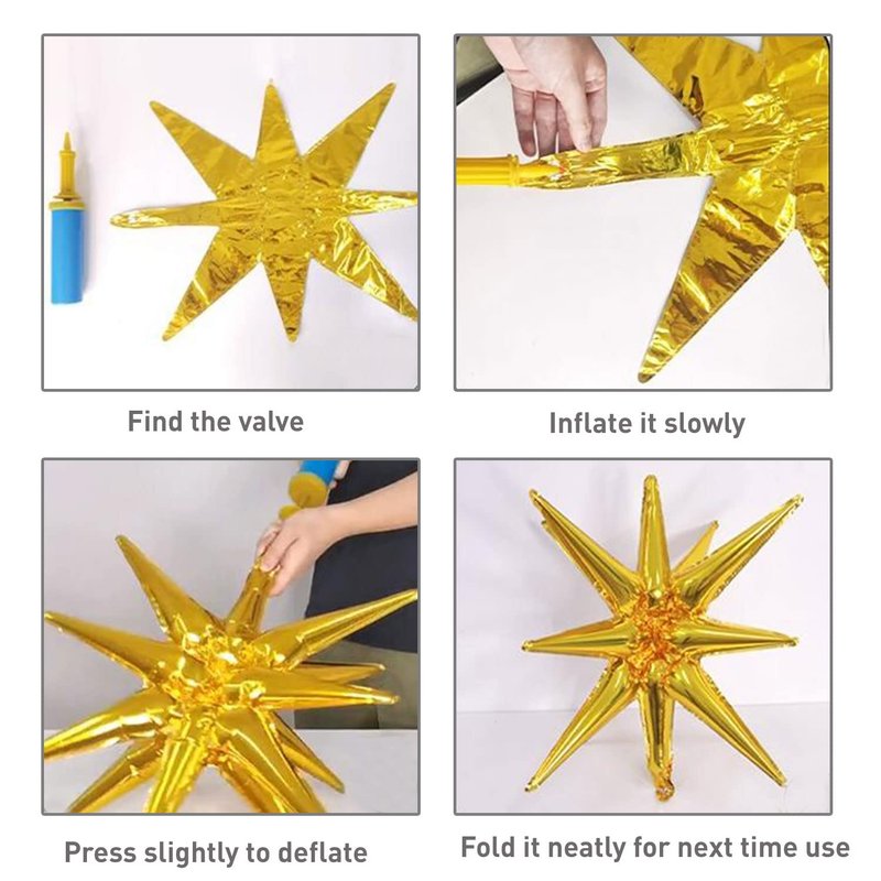 - 【4D Star Foil Balloons】Explosion Star Foil Balloons are made of aluminum foil. Quality and durable materials make the balloons look shiny and delicate. The balloon stars are practical, reusable, and do not leak easily.