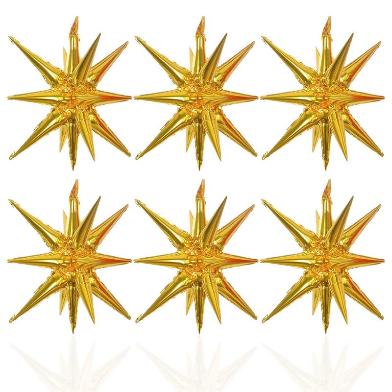 6 Pcs Gold Star Foil Balloons One-Piece 14-Pointed Star Balloons 4D Starburst Cone Mylar Balloons 22inch Christmas Birthday Wedding Wedding Anniversary Party Supplies(Gold)