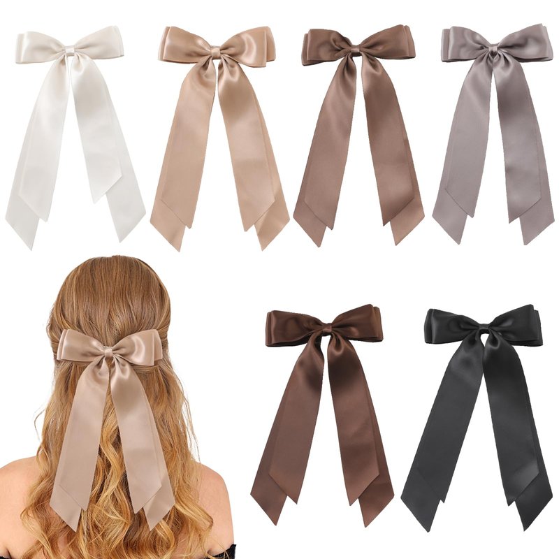 6 PCS Hair Bows for Women, Hair Ribbon Bow Hair Clips, Silky Satin Hair Bows, Slide Metal Clips Hair Bow with Long Tail, Hair Bow Barrettes Clips for Girls, Valentines Birthday Gift