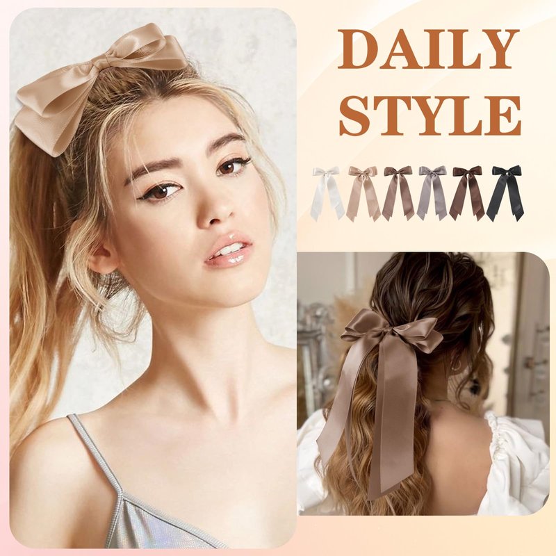 6PCS Silky Satin Hair Bows Hair Clips, Hair Ribbon Ponytail Holder Accessories Slides Metal Clips Hair Bow for Women Girls