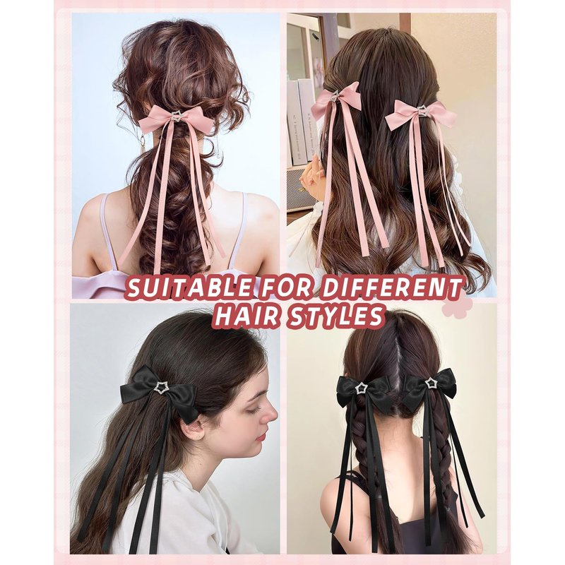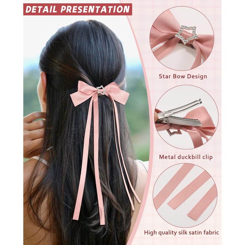 - 🎀【Fashionable Design】The silky satin hair bow clip adopts a classic bow design and star design with a cute tail and soft high-quality bow, adding a touch of cuteness and elegance to your hairstyle, making you look more charming and attractive. Suitable for most women and girls.