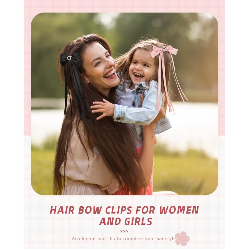 - 🌷【Perfect Accessory】Our hair ribbon makes your daily outfit more charming. Bow hairpins are easy to attach to your hair. It is an excellent choice for decorating hairstyles. There are 6 hair bow clips in one pack, so you can mix and match to match any outfit and hairstyle.