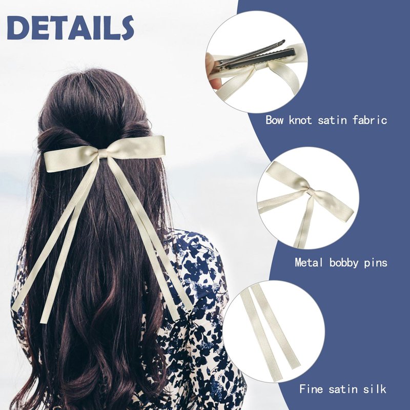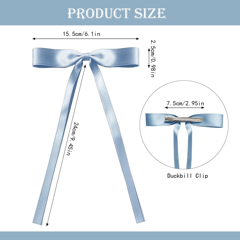 - 【 Perfect Size 】 The size of the Ribbon Hair Clip is approximately 5.9 x 9 inches. The ribbon bow hair clips can effectively hold the hair in place without sliding down. The metal Clips design is suitable for all hairstyles . The larger size is suitable for thin or thick curly hair, and it is longer. The integral design comes from of beautiful bows in life, simple and practical. A variety of colors to suit different tastes.