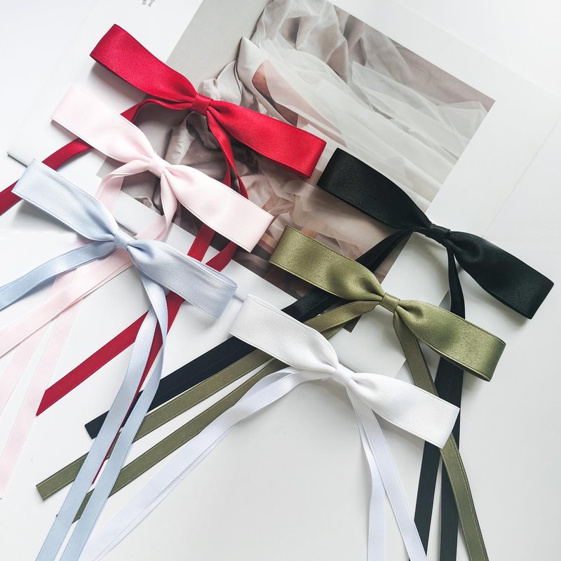 6 Pcs Hair Bows For Women, Silky Satin Ribbon Hair Clips Bowknot With Long Tail,Bowknot Hair Clips Hair Barrettes Hair Accessories For Women Girls (Black, White, Pink, Burgundy, Green, Blue)