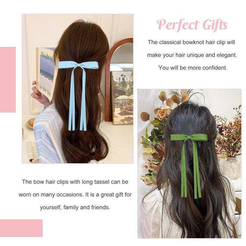 - ⭐Wonderful Gifts: The exquisite design hair bows for women are wonderful for daily wearing, parties, wedding reception, ceremonies, fashion shows, birthdays, Christmas. The silk bow hair clips with long tail suit for thick thin curly or long hair, perfect gifts for your daughter, friends, sisters.