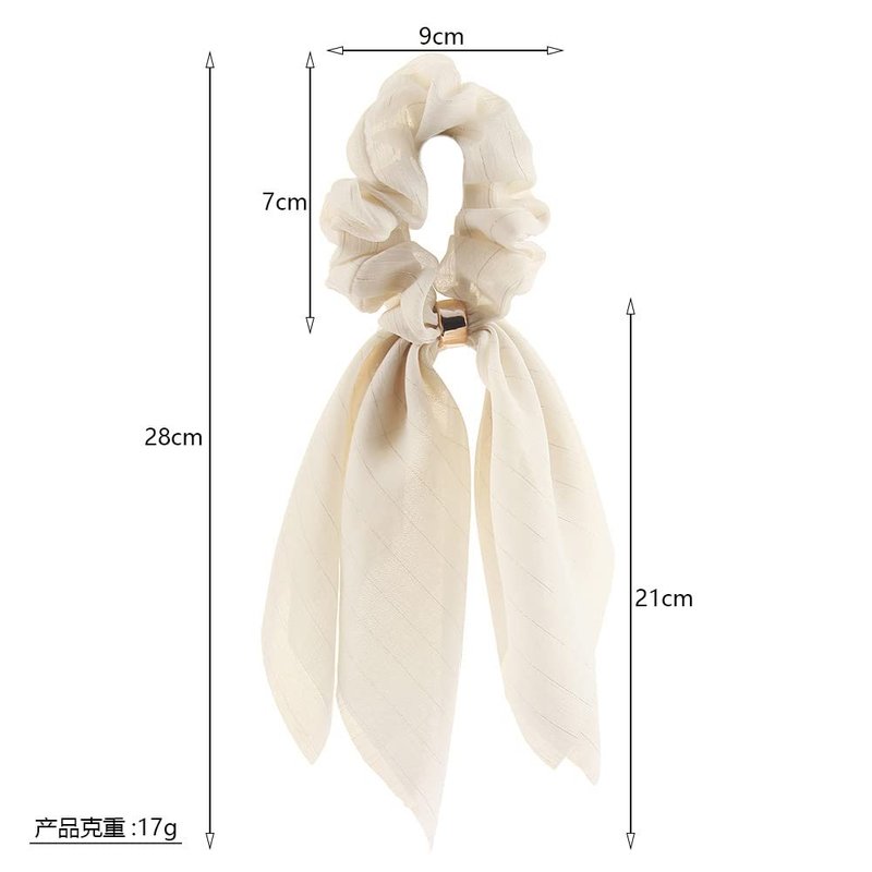 Scrunchies can be used to wrap around your bun, tie around your tail, wear as a bracelet, or decorate your handbag with the ribbon part. Widely used.