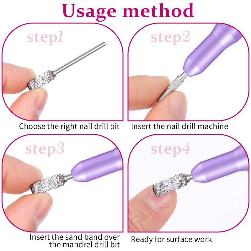 - 【Wide Application】 Use the mandrel drill bit with a small sanding belt to perfectly and gently remove the shine on natural nails, used for nail removal, polishing and grinding, can be used for natural nails and artificial nails, perfect for use in professional nail salons, beauty salons, spas and home DIY nail projects.