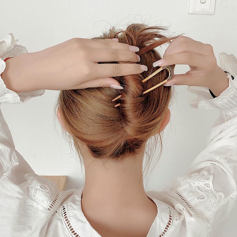 6 Pcs Metal U Shaped Hairpins Simple Hair Sticks Vintage French Hair Pin Chignon Hair Grips Clips 2 Prong Bun Hair Accessories for Women Girls