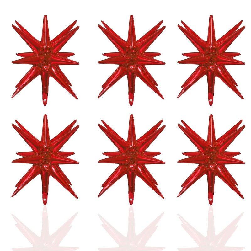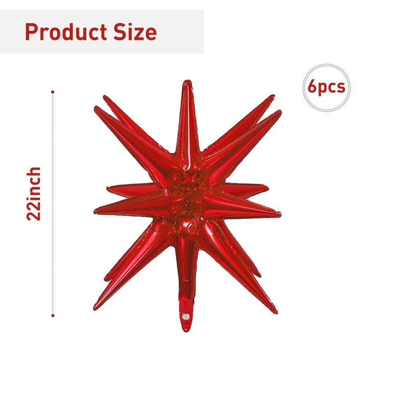 6 Pack 14 Point Foil Cone Balloons Starburst Cone Mylar Balloons Large Explosion Star Balloon for Wedding Birthday Party Photo Booth Decoration Supplies, Red One-Piece 14-pointed Star Explosion Balloons 6 pcs PRODUCT SPECIFICATION: Material: Aluminum foil. PACKAGE CONTENTS: 6pcs silvery explosion star balloons SIZE: Each foil cone balloon measures approx 22 inches after inflation Easy to use: Use the inflator to pump the foil disco ball balloon to 80% by air or helium, when inflation being completed, pull out the inflator and pinch the inflation inlet flat. The air outlet will be automatically sealed by its matched self adhesive glue of the balloons inlets, and no additional knots are required (inflator is not included).