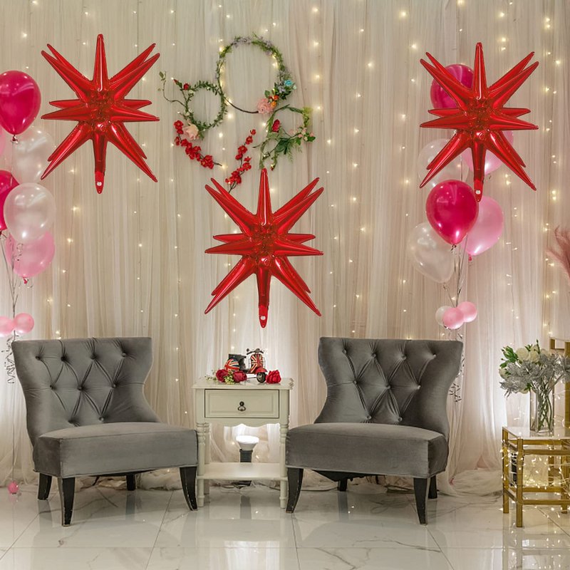 - 【4D Star Foil Balloons】Explosion Star Foil Balloons are made of aluminum foil. Quality and durable materials make the balloons look shiny and delicate. The balloon stars are practical, reusable, and do not leak easily.