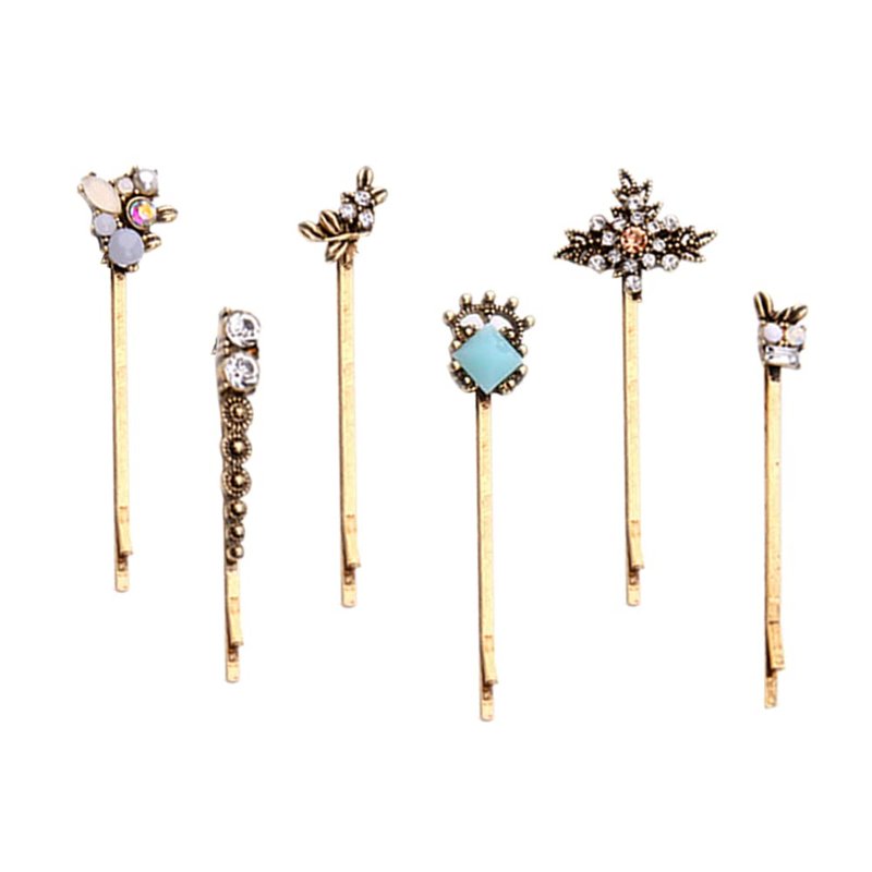 6 pcs Retro Hair Pins Pearl Hair Pins Rhinestone Fashion Barrettes Set for Wedding Bridal Prom Party Girls Styling Hair Accessories(Retro)