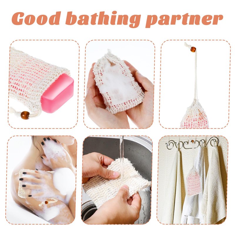 - High-quality materials: Our sisal soap saver bag are made of high-quality cotton and linen materials, which are soft and durable, can effectively clean and exfoliate, while gently massaging the skin, making your bathing experience more comfortable.