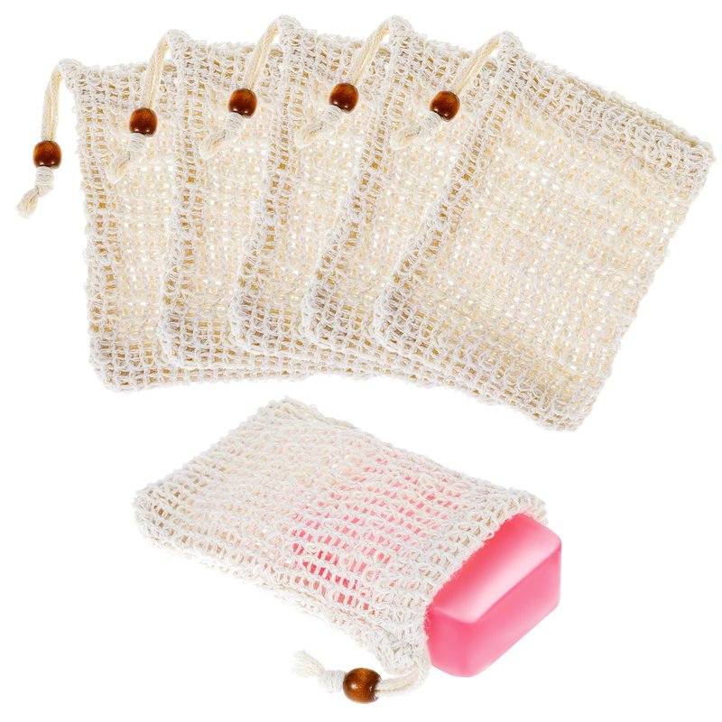 6 Pcs Soap Saver Bag Soap Bags For Soap Bars Sisal Soap Saver Bag Exfoliating Soap Pouch With Drawstring Bar Soap Bag With Wooden Bead For Foaming And Drying Quick Drying Holder In Shower