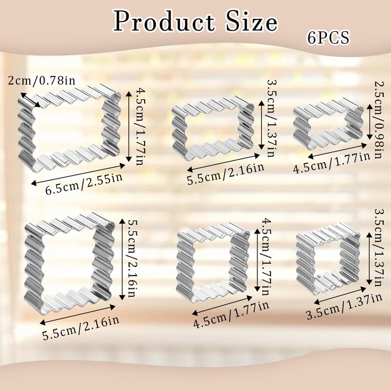 6 Pcs Square Cookie Cutter, Wavy Rectangle Cookie Cutter Reusable Cookies Mold with Jagged Edge Design for a Special Event Holiday Everyday Treat