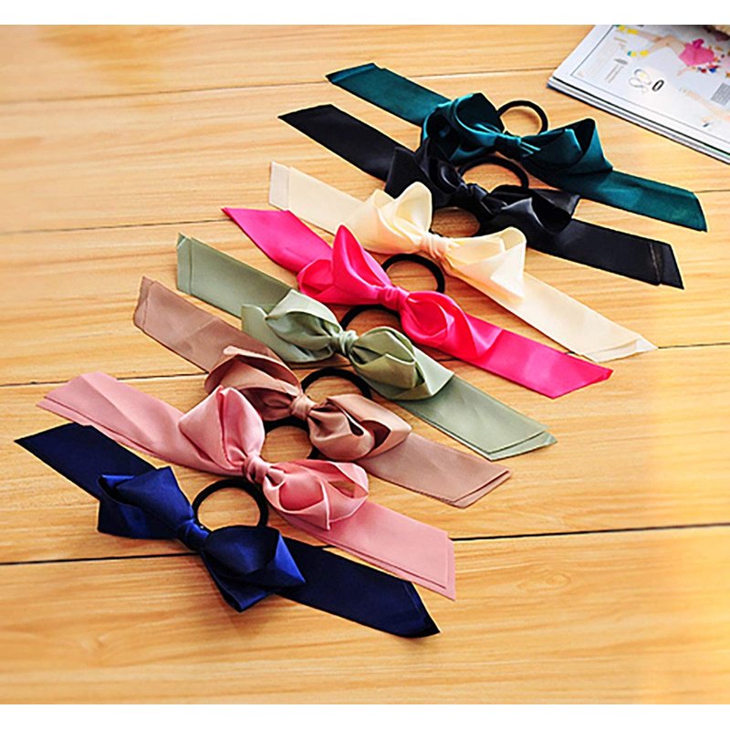 6 PCS Women Lady Satin Ribbon Bow Hair Rope Head Wrap Headbands Elastics Hair Tie Ponytail Holders Hair Accessories Headdress