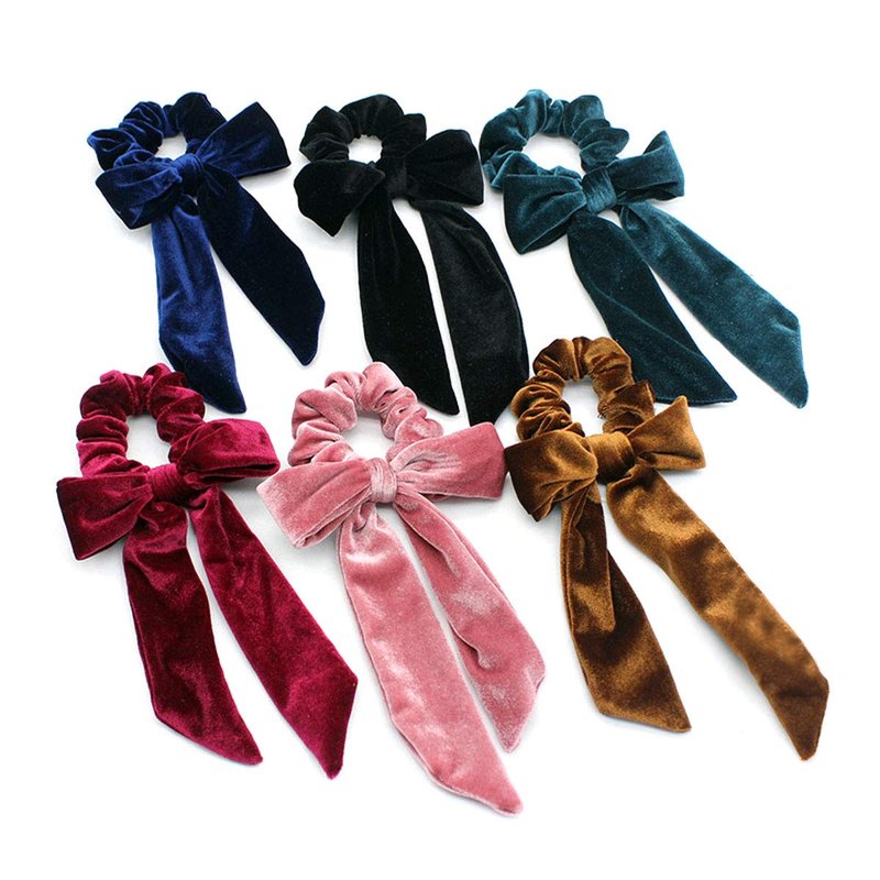 6 PCS Women Lady Velvet Elastics Hair Scrunchies Hair Ties Bow Soft Head Wrap Headbands Elastics Hair Tie Ponytail Holders Hair Accessories