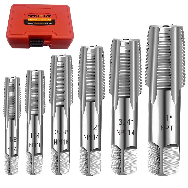 6-Piece NPT Pipe Tap Set, Precision Carbon Steel NPT Tap Set for Clean Accurate Threads, 1", 3/4", 1/2", 3/8", 1/4", 1/8" NPT Tap, Perfect for Plumbers Mechanics DIYers, with Durable Plastic Case