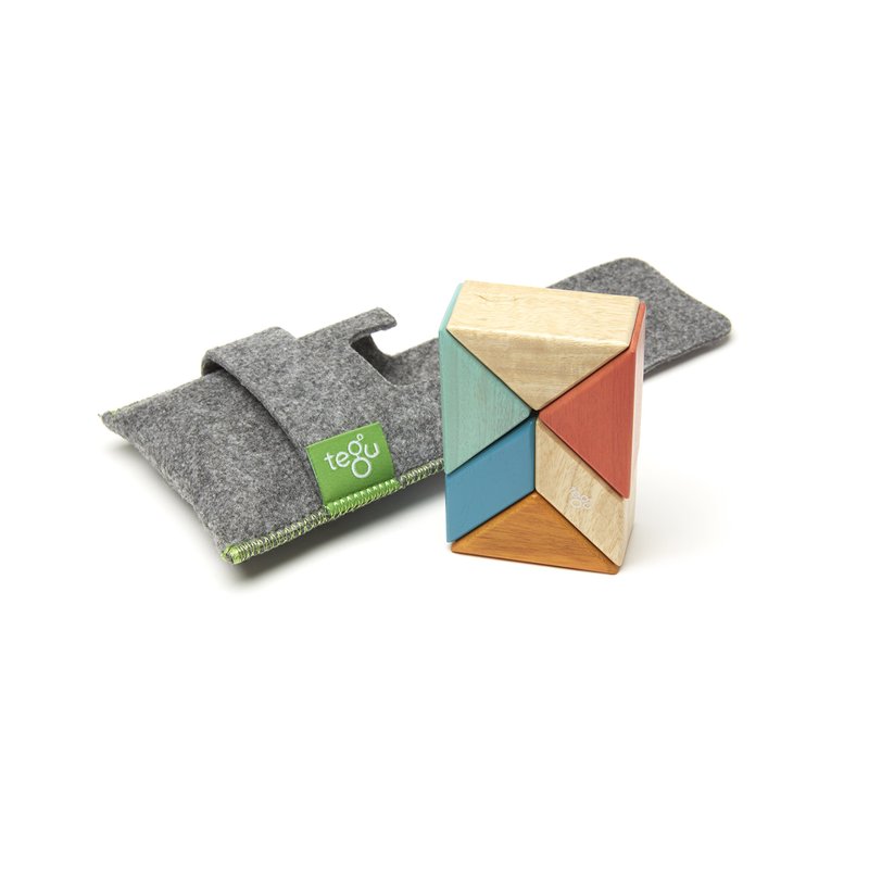 6 Piece Tegu Pocket Pouch Prism Magnetic Wooden Block Set, Sunset