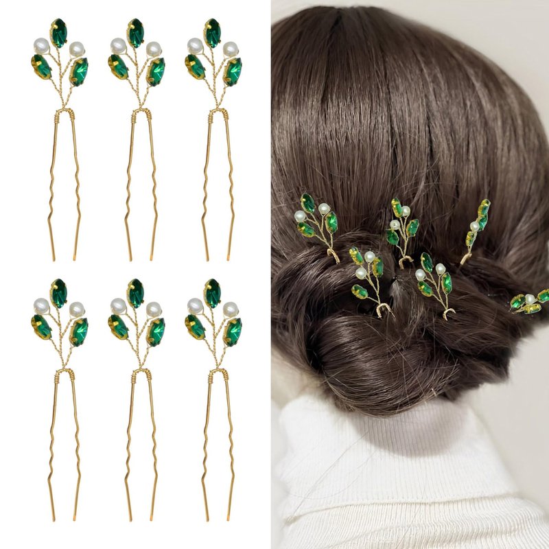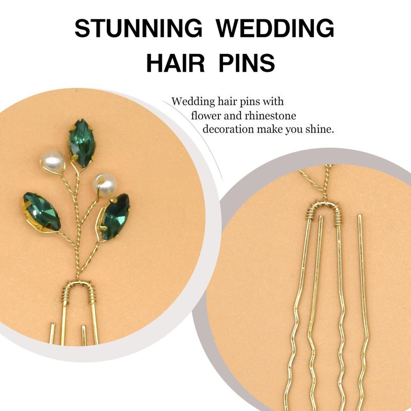 6 Pieces Emerald Green Rhinestone Wedding Hair Comb Bridal Hair Pins, U-shaped Rhinestone Hair Accessories for Women Girls(turquoise)