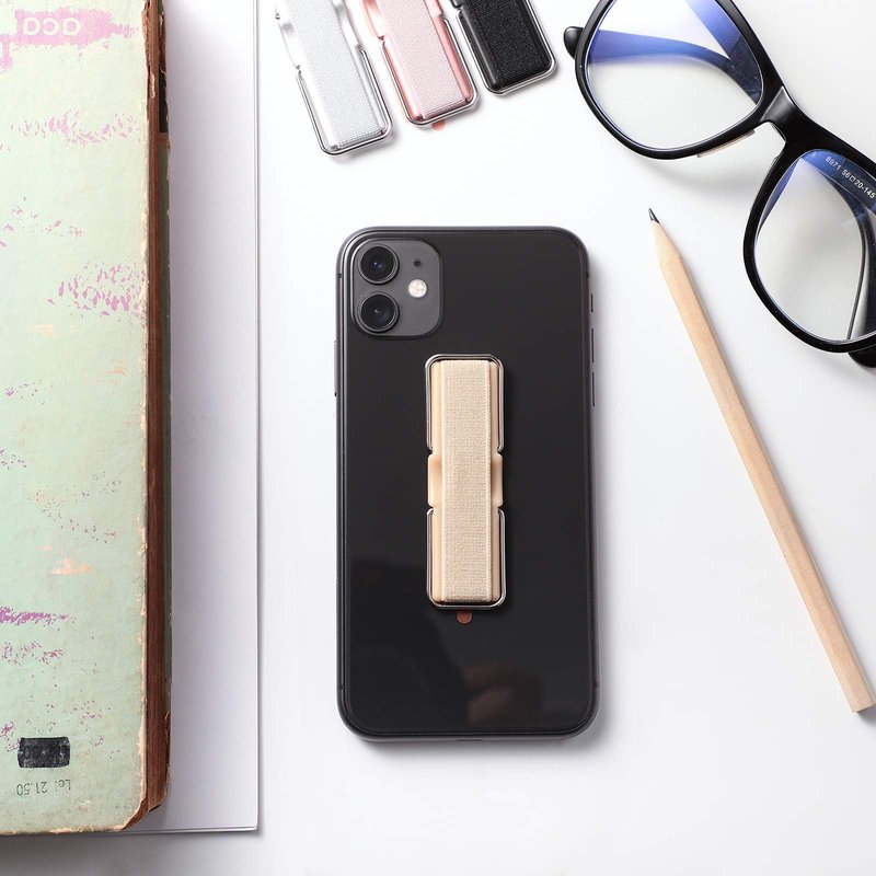 There is a metal sheet of the phone holder that can be turned outwards, which can be applied as a stand or a phone stand. The elastic belt can also be applied to hang the device on the hook, which is practical and convenient to release your hands, just using 1 or 2 fingers to use mobile phone well.