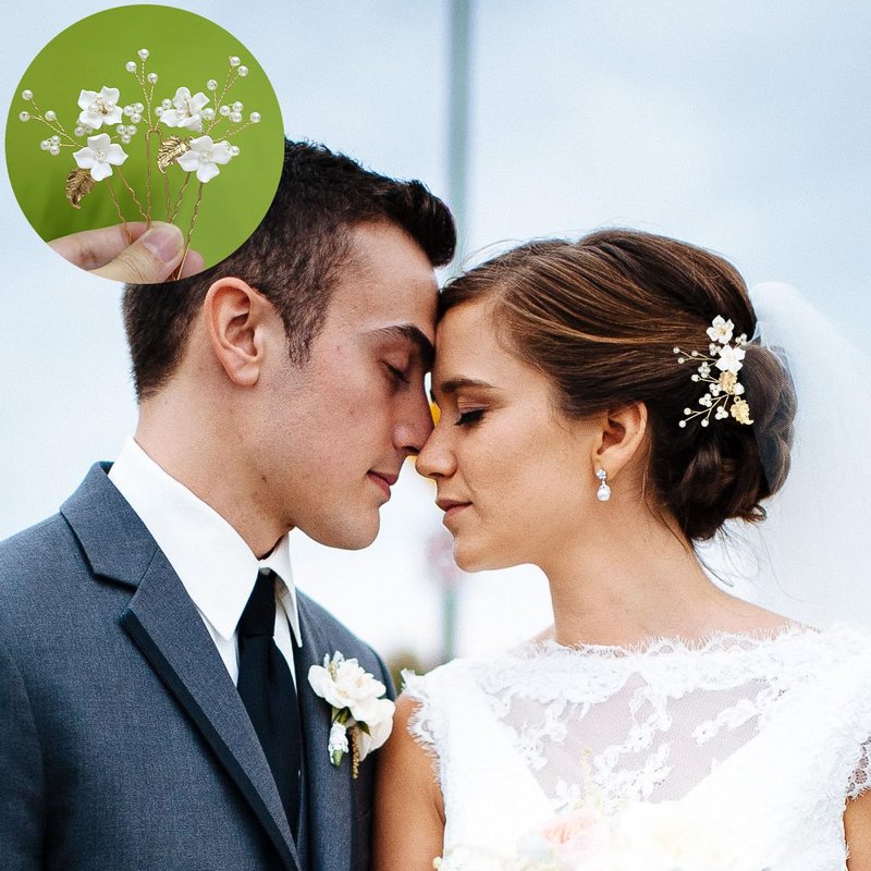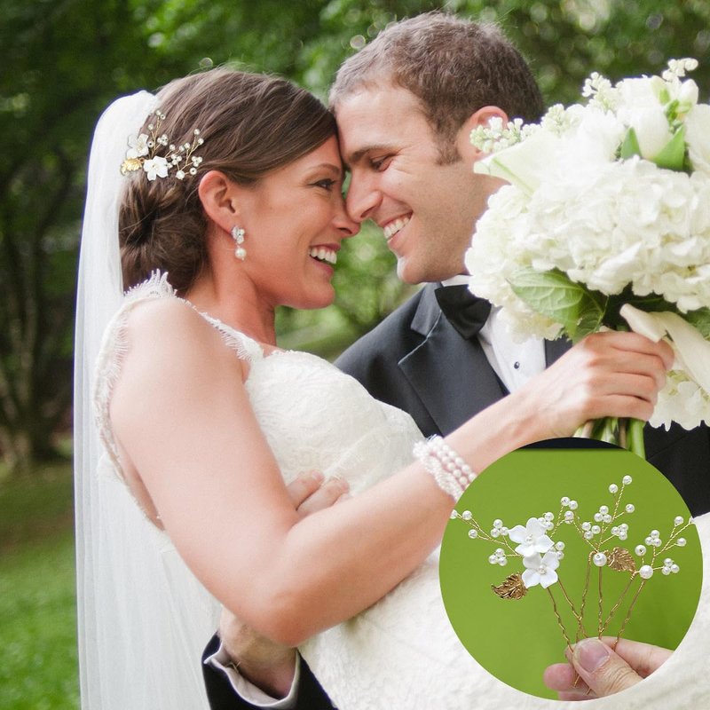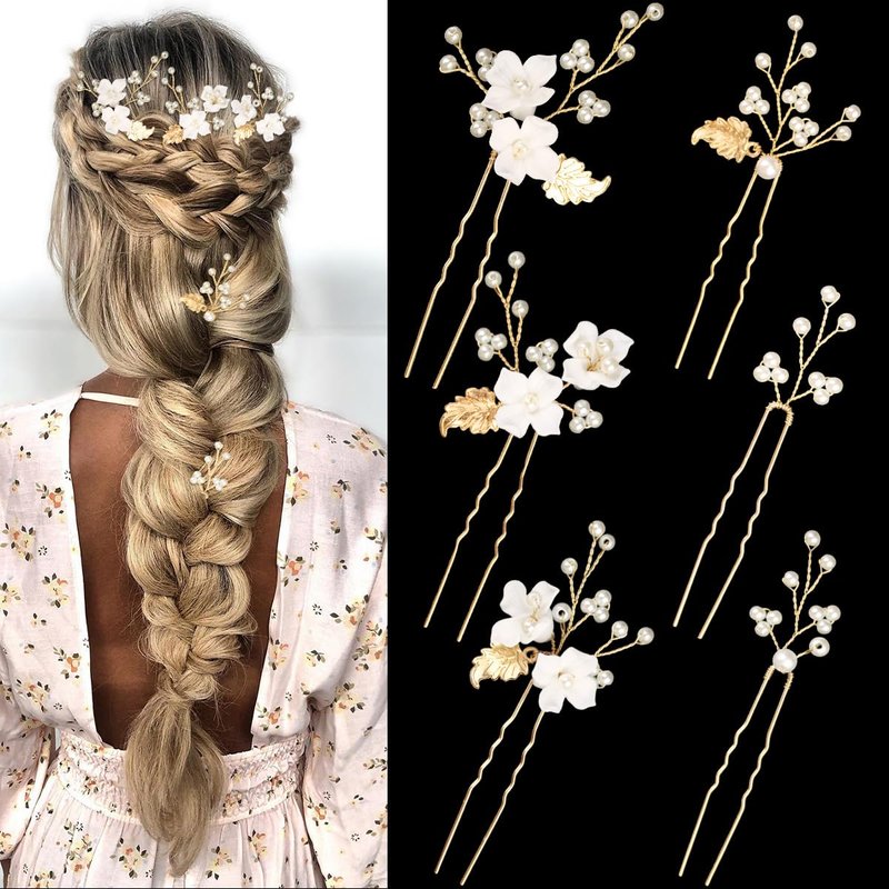 6 Pieces Flower Pearl Wedding Hair Pins, Handmade Gold Leaf Bridal Hair Styling Pins Headpiece Jewelry for Brides Bridesmaids and Flower Girls(Flower Pearl Style)