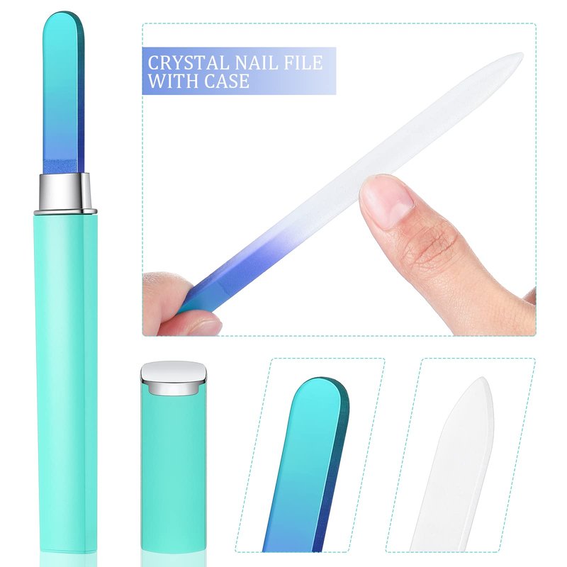 - Easy to use: the crystal nail file with case has double sides fine grits, can quickly smooth the nail surface and edges, use it file nails into a desired shape and polish the nail surface until it is smooth and shiny; The glass cuticle trimmer comes with a pointed end and a flat end, the pointed end can clean the dirt hiddenning in nails, the flat end can push and remove cuticles on the nail surface