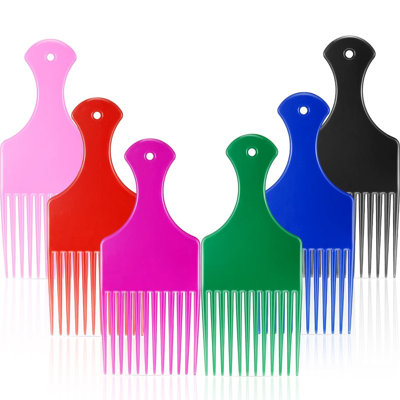6 Pieces Hair Pick Comb, 6.5 Inch Smooth Plastic Wide Hair Pick Comb, Afro Hair Comb, Hairdressing Styling Tool for Natural Curly Hair (Black, Blue, Pink, Green, Red, Purple)
