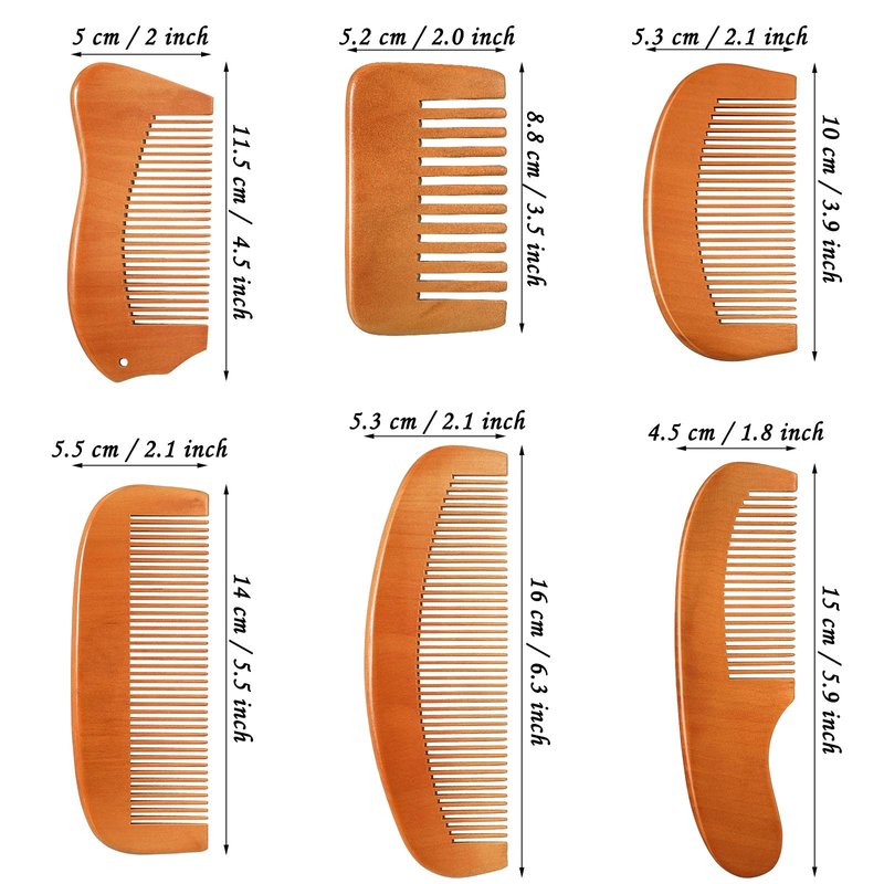 - Various sizes and shapes: the natural wooden combs have 6 shapes, and they are in different sizes, children and adults can use them; And there are different combs with wide teeth and fine teeth, whether you have long hair, short hair, curly hair, and straight hair, you can use them with no burden