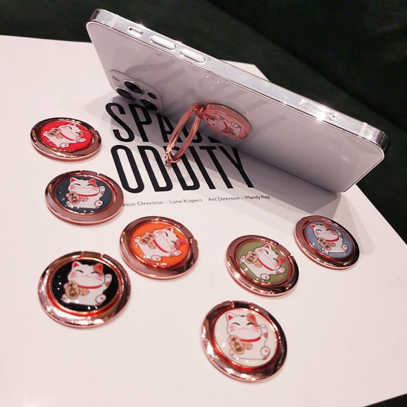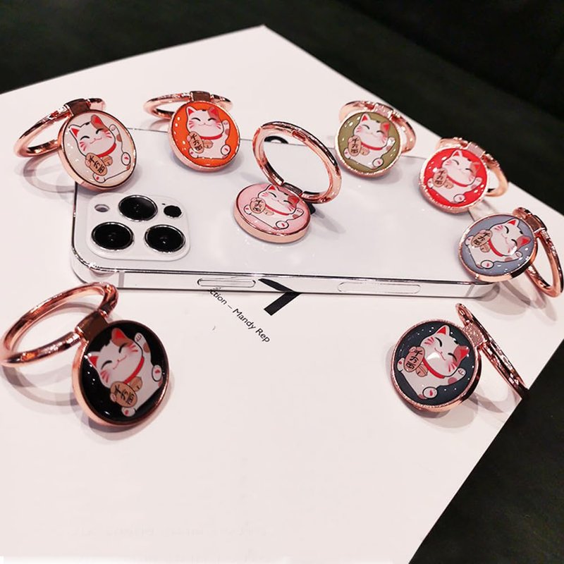 - Very cute Japanese lucky cat money cat mobile phone holder, with glue back anime cat mobile phone grip ring, easy to carry mobile phone.