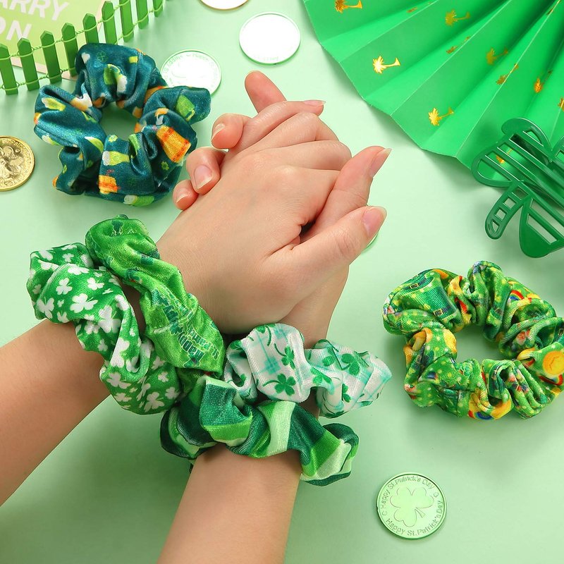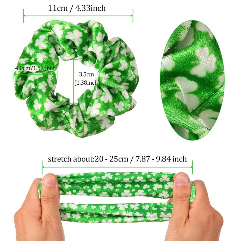 - Widely usage: these velvet scrunchy hair ties are printed with festival element patterns, which are suitable for attending St Patrick's Day party, parade, celebration, work and school party, the scrunchies can also help you hold your hair and match with different hairstyles, including ponytails, half-up, half-down, buns and so on, then as a nice photo prop