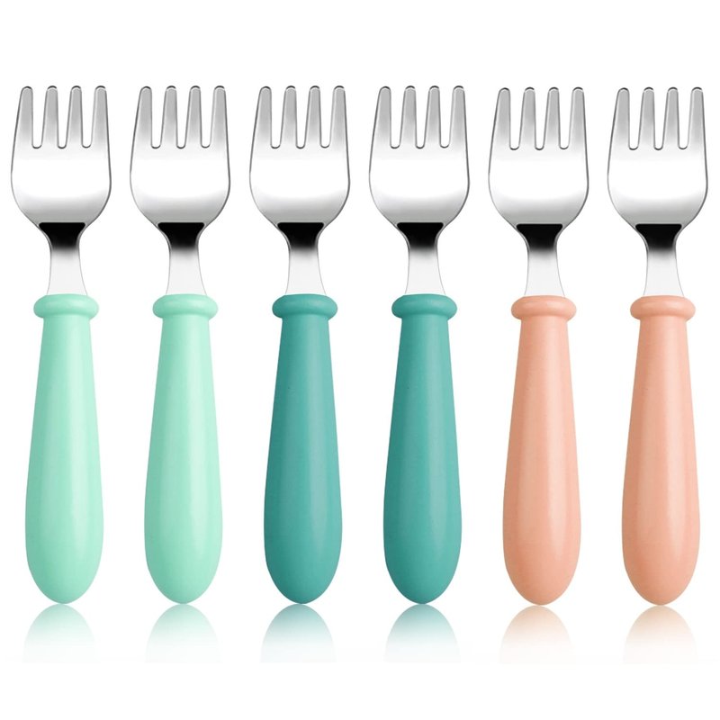 6 Pieces Toddler Forks Baby Forks Kids Forks with Round Handle, Stainless Steel Toddler Utensils Baby Silverware Metal Cutlery Set BPA Free, Dishwasher Safe
