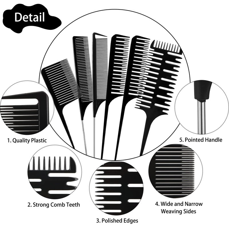 6 Pieces Weaving Comb Dyeing Hair Comb Weaving Sectioning Foiling Comb Rat Tail Styling Hair Dyeing Combs for Foiling Balayage Hair Coloring (Various Styles)