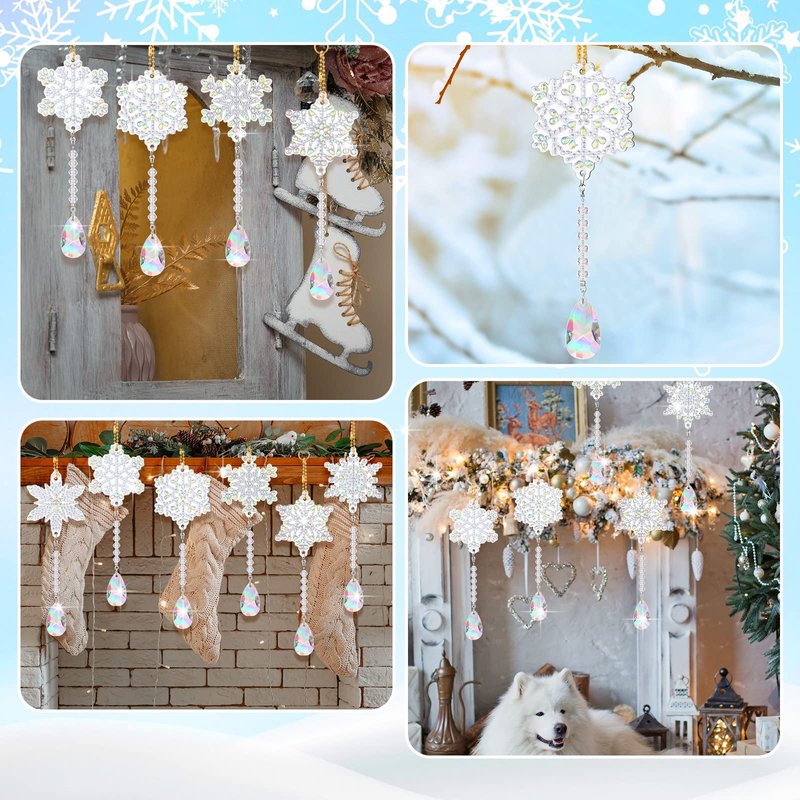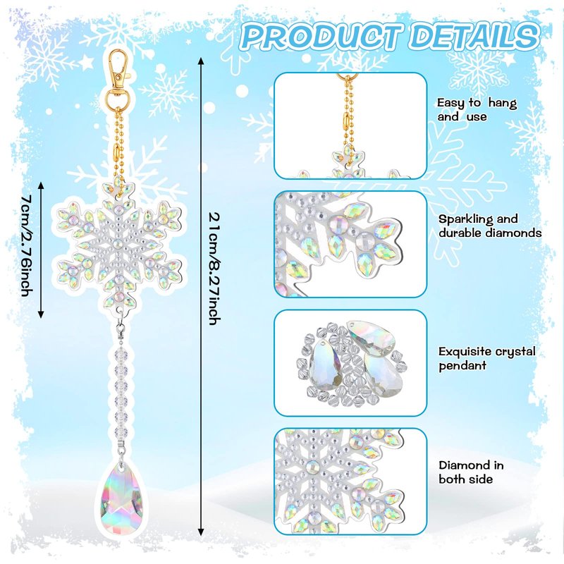 6 Pieces Winter Snowflake Painting Kits Double Sided Painting Suncatchers Wind Chimes Hanging Diamond Accessories for Kids DIY Crafts Christmas Home Windows Decoration