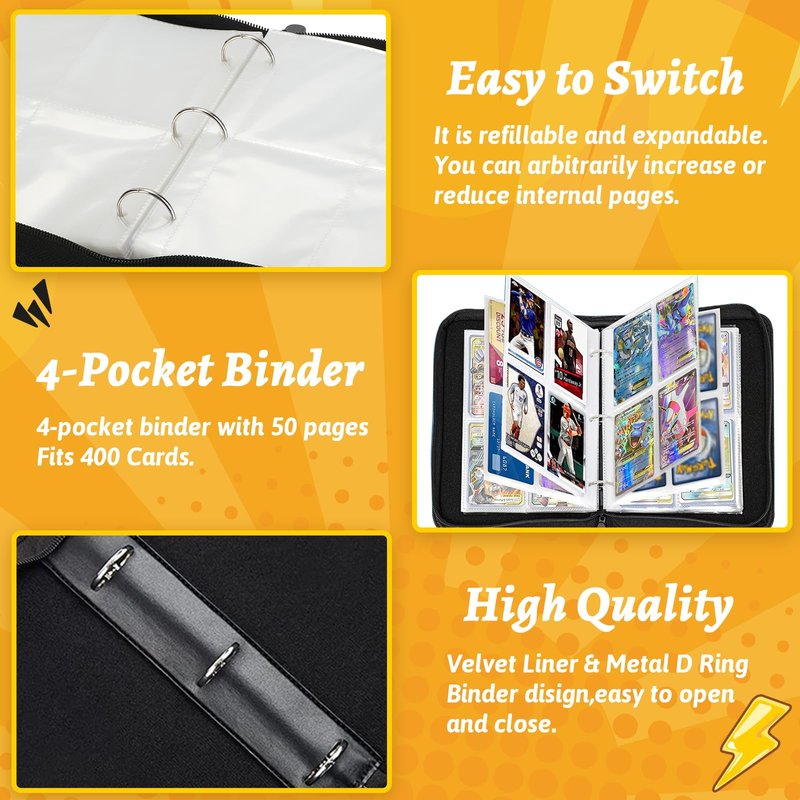 - 🌟【Premium Material】The card binder album is waterproof EVA foam and PU leather, with good shock, dust-proof, and moisture resistance. The quality zipper seals the binder to keep the cards intact; an extra wristband design makes it easy to carry around.
