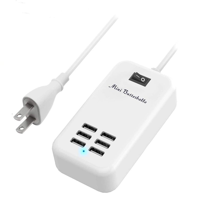 6 Ports USB Charger Hub Desktop US Plug AC Power Wall Travel Charging Adapter Slots Charging Station Extension Socket Outlet with Cable