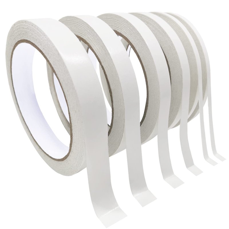 - 【Premium Double Sided Tape】Multi-purpose double sided craft tape made of high quality double-sided adhesive and 0.08mm(80μ) thick translucent cotton paper layer, durable and safe. Six different sizes of double sides tape can be easily selected in different widths according to the different objects to be taped. The double stick tape can be easily teared by hand.