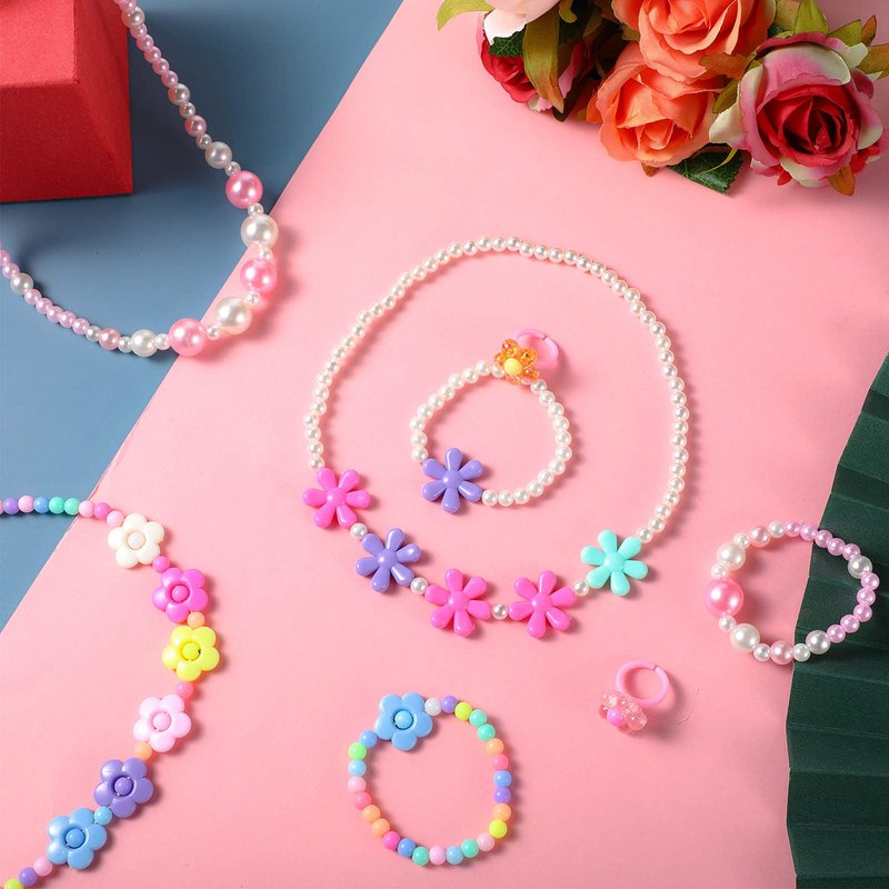 - Chic design: these girls jewelry toys have multiple styles, each necklaces and bracelets has different cute designs, such as rainbow, mermaid and so on; Add some bling to your look with some pretty stretch bracelets and rings, the necklace and bracelet set has the elastic, the ring has an open design, which is easy to put on and remove