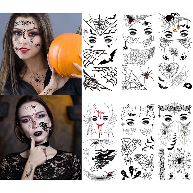 - Packing Include:6 sheets Halloween makeup tattoos each pattern is unique, seem very realistic and natural. Various pattern tattoos to meet your Halloween makeup needs