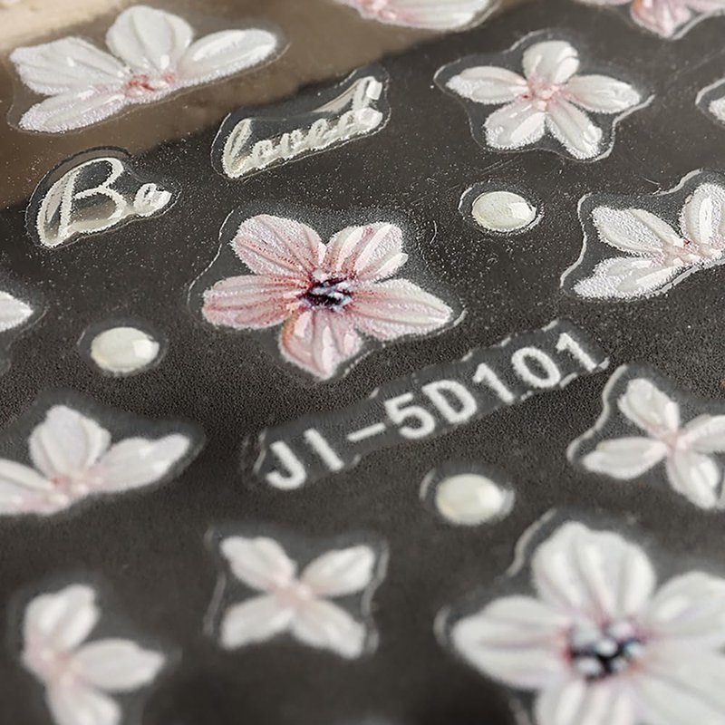 Item:5D pink embossed cherry blossom petals sakura flower nail stickers