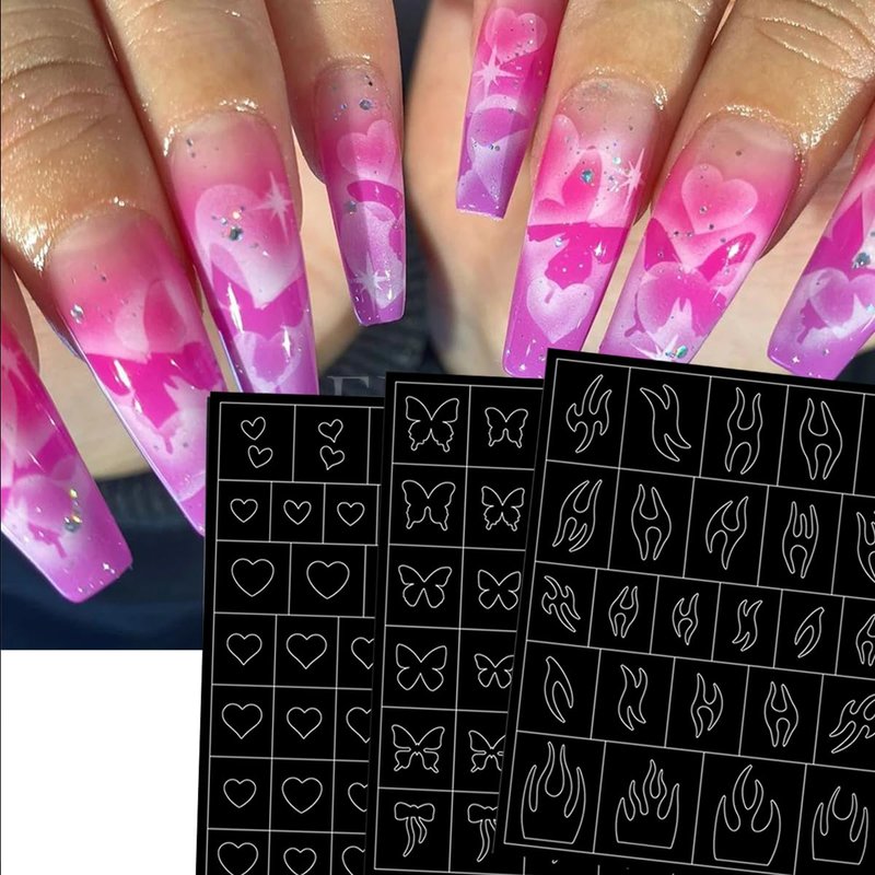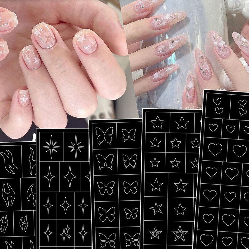 Airbrush Nail Art Stencils Heart Butterfly Stars Nail Stickers French Printing Template Stencil Tool DIY Nail Designs Nail Art Decorations